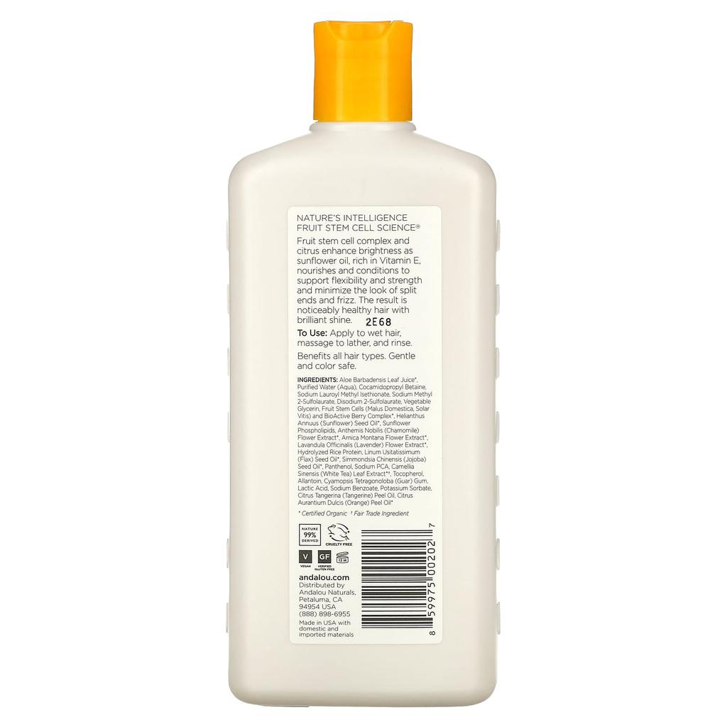 Andalou Naturals, Шампунь, Сияние, Сила и Жизненная сила, Подсолнечник и Цитрус, 11,5 жидких унций (340 мл)