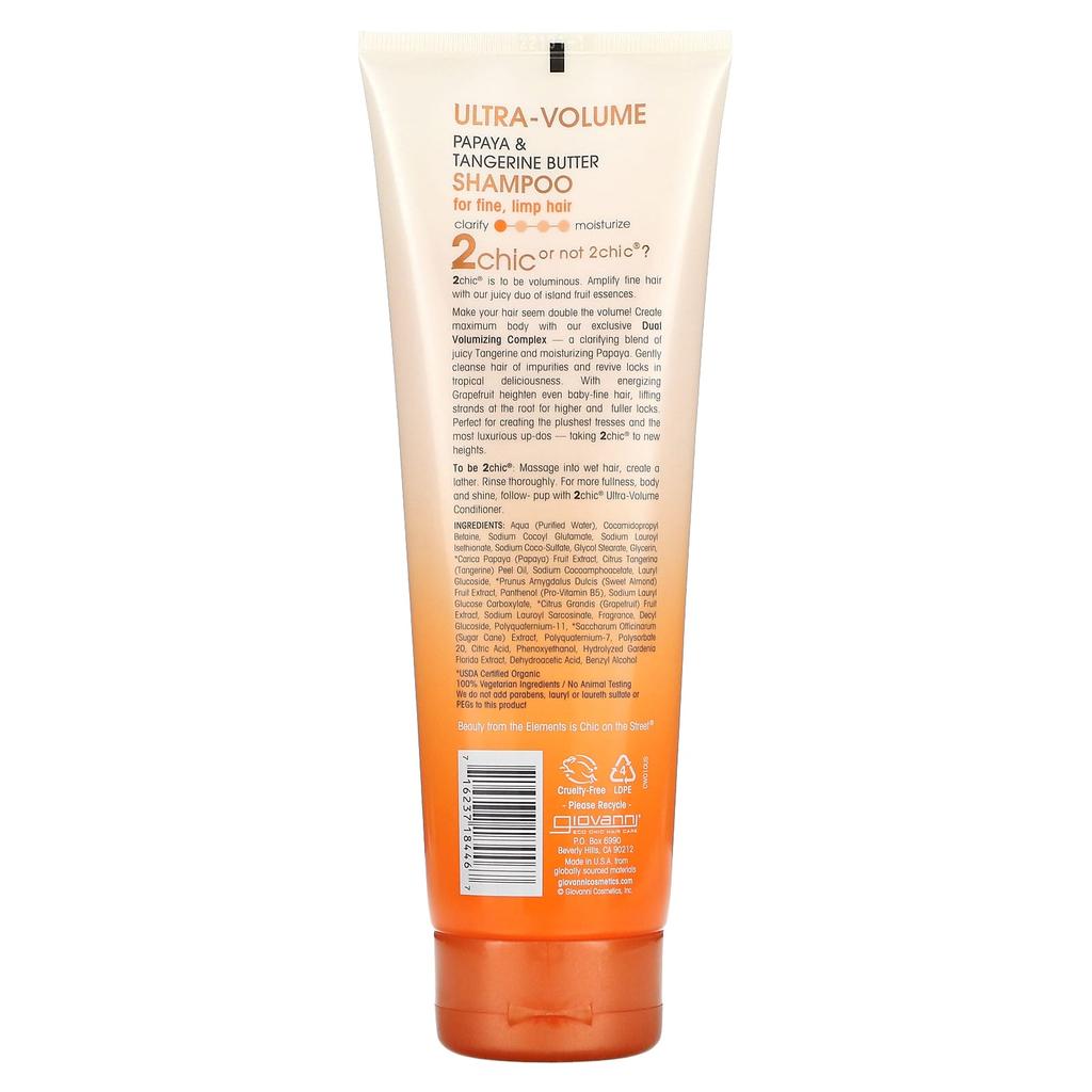Giovanni, 2chic, шампунь для ультраобъема, для тонких и слабых волос, папайя + масло мандарина, 8,5 жидких унций (250 мл)
