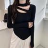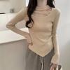 Осень и зима Приталенный свитер с круглым вырезом и висячей горловиной, вязаный свитер, женский асимметричный топ с длинными рукавами