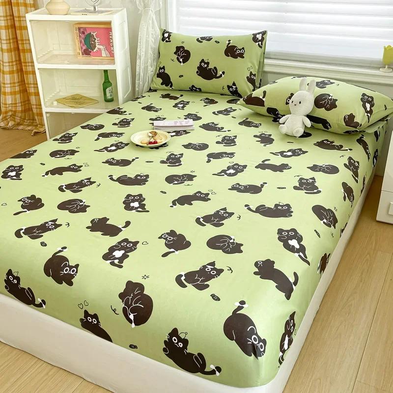 Комплект простыней на резинке с мультяшными котами размера Queen, комплект постельного белья с милым котенком, комплекты постельного белья с котом Kawaii, украшение для спальни для детей и подростков взрослых