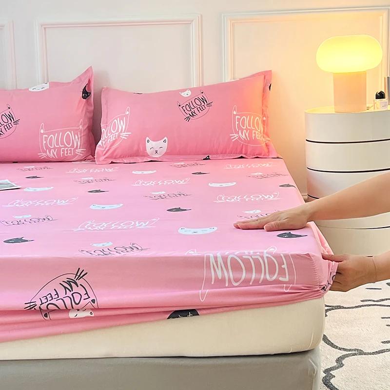Милый котенок, котенок, простыня на резинке, детский комплект постельного белья, розовый, кавайный, с изображением животных, для детей, декор для спальни, покрывала