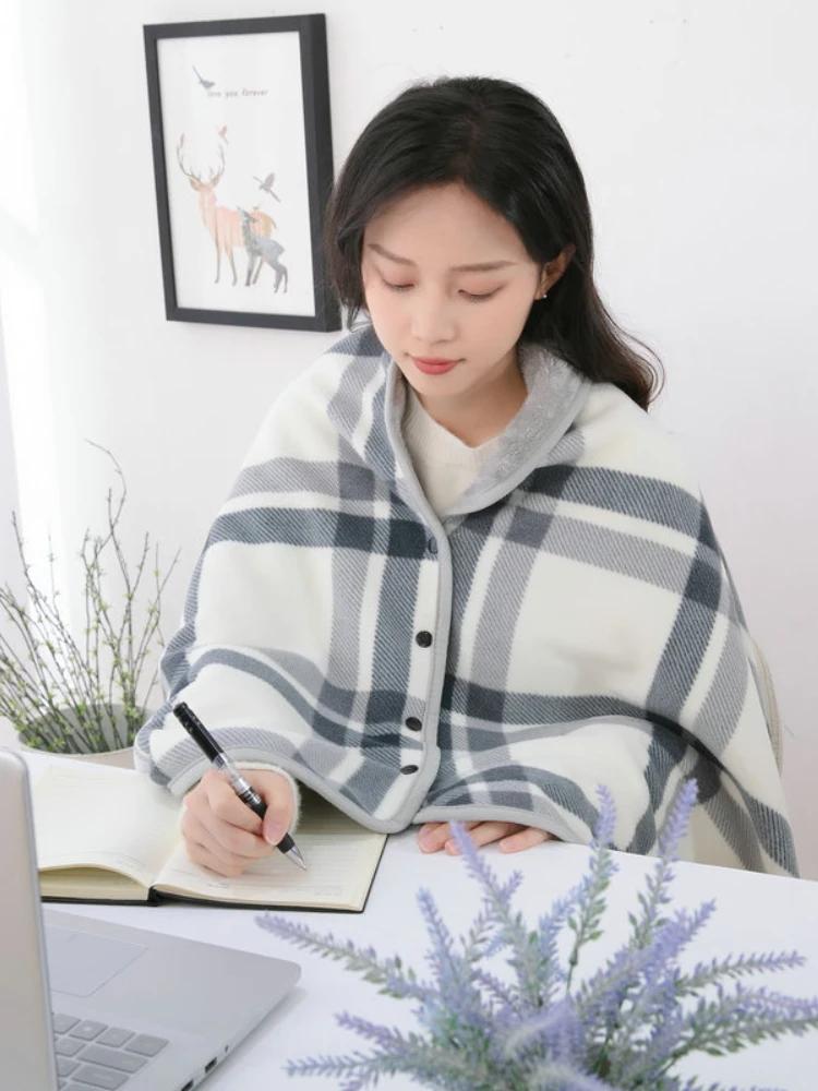 Носимое клетчатое одеяло, флисовое двухслойное одеяло с пуговицами, утолщенное многофункциональное зимнее теплое одеяло для дивана-кровати