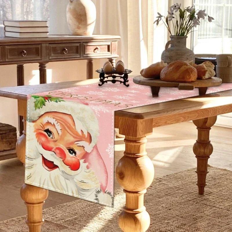 Простые рождественские льняные дорожки для стола, розовые дорожки для стола, украшение обеденного стола, украшение для домашнего праздника, праздничное украшение