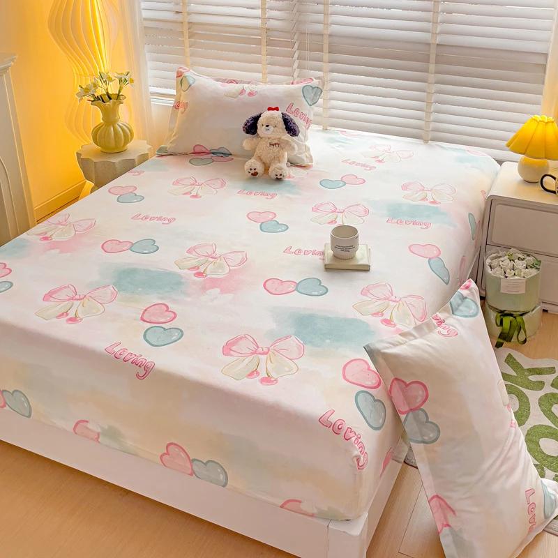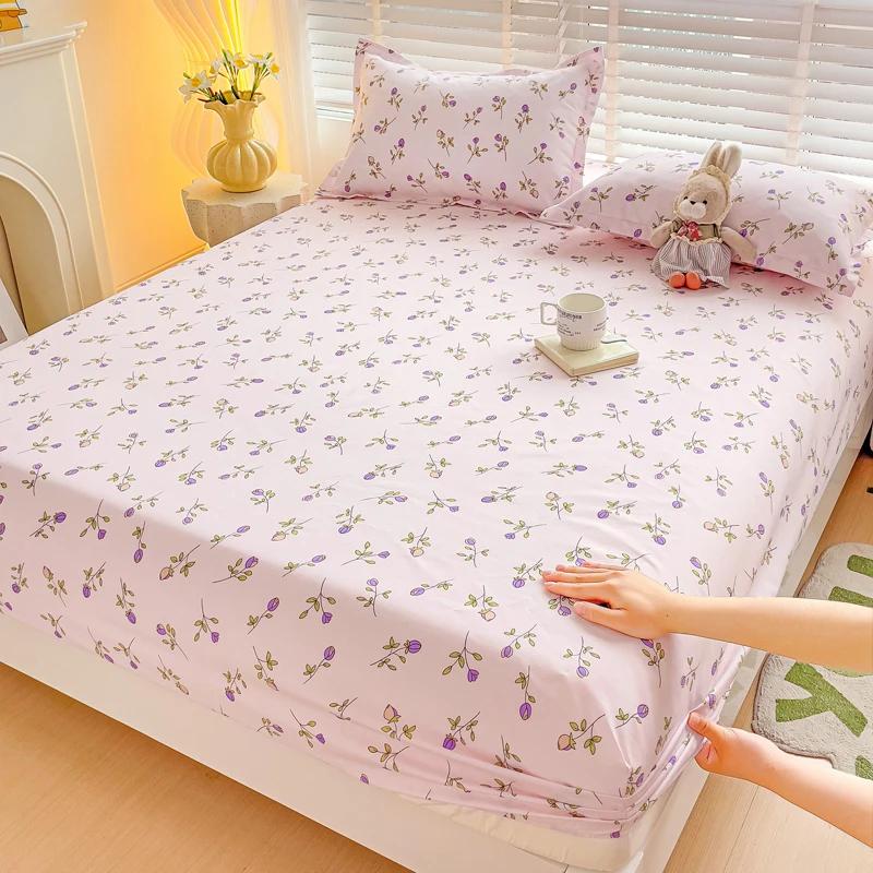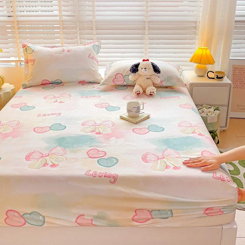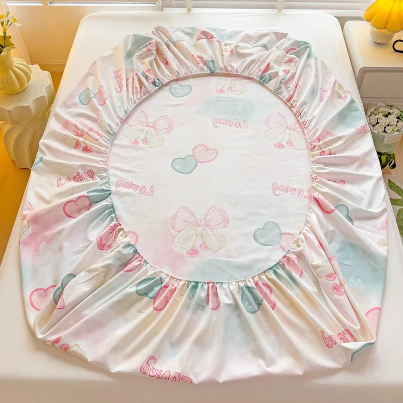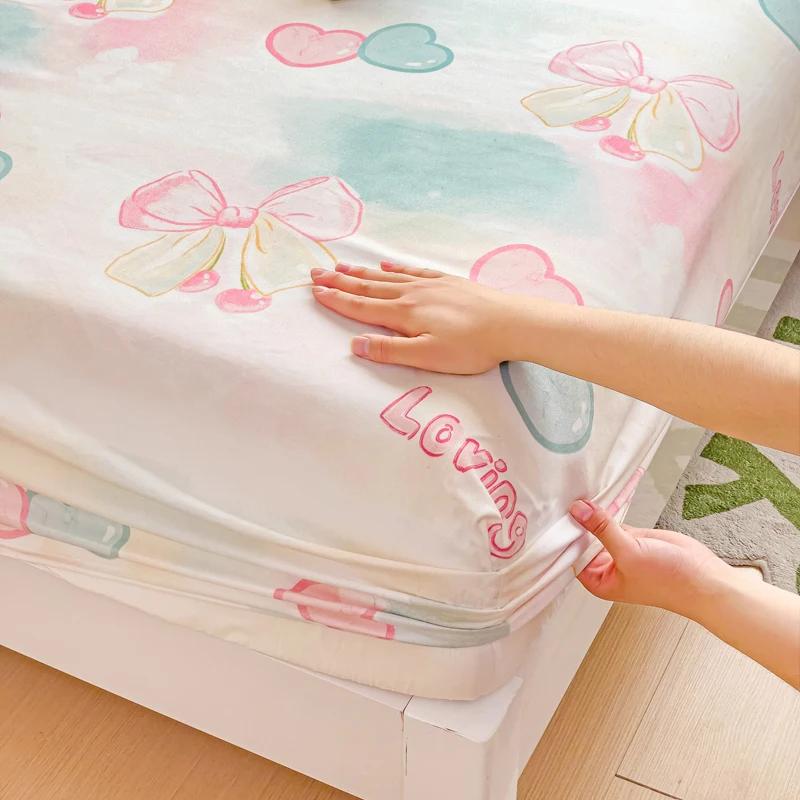 Комплекты простыней для двуспальной кровати Розовые с принтом бантиков Простыня на резинке для девочек Одинарная простыня для простыней размера кинг на резинке