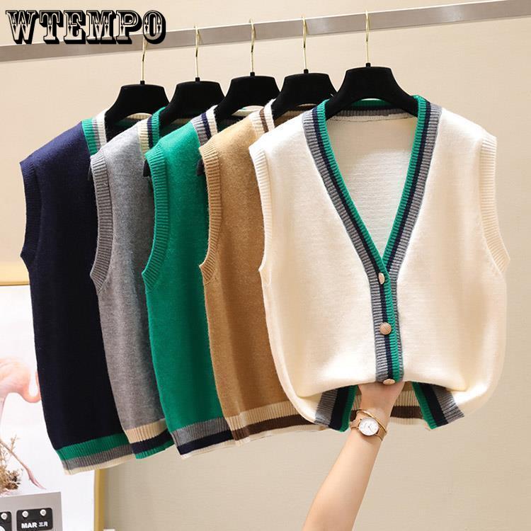 Коллекция весна и осень цветной безрукавный вязаный кардиган женская универсальная майка жилет