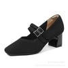 Женские туфли-лодочки Мэри Джейн с квадратным носком, удобные нарядные туфли, трикотажные туфли на толстом каблуке с двойным ремешком, повседневные туфли без застежек для ходьбы, офисные туфли на низком каблуке для женщин