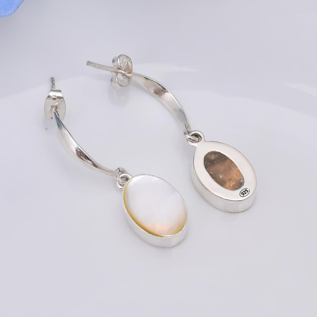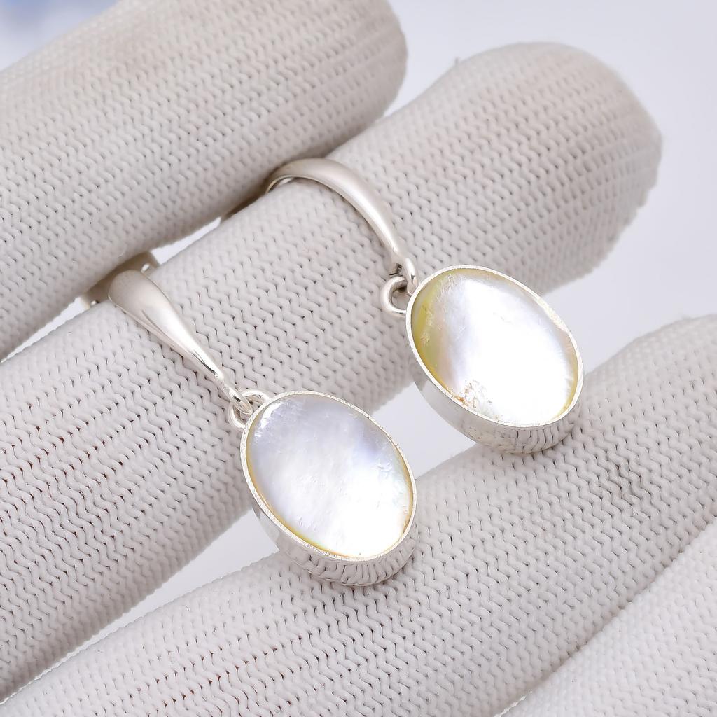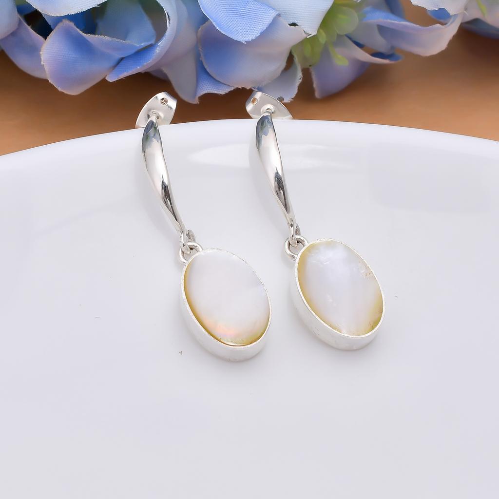 Перламутр - Австралия 925 Стерлинговое Серебро Серьга V4505, Белая Серьга, Овальная Серьга, Подарок на День Святого Валентина, Подарок для Нее, Подарок на День Рождения, Ручная Работа