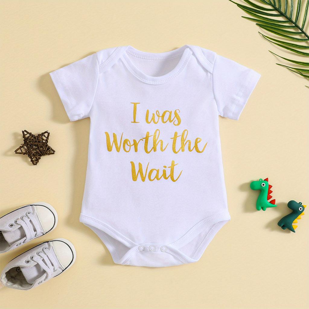 Боди для младенцев с принтом «I Was Worth The Wait» из 100% хлопка, милый комбинезон с короткими рукавами, комбинезон