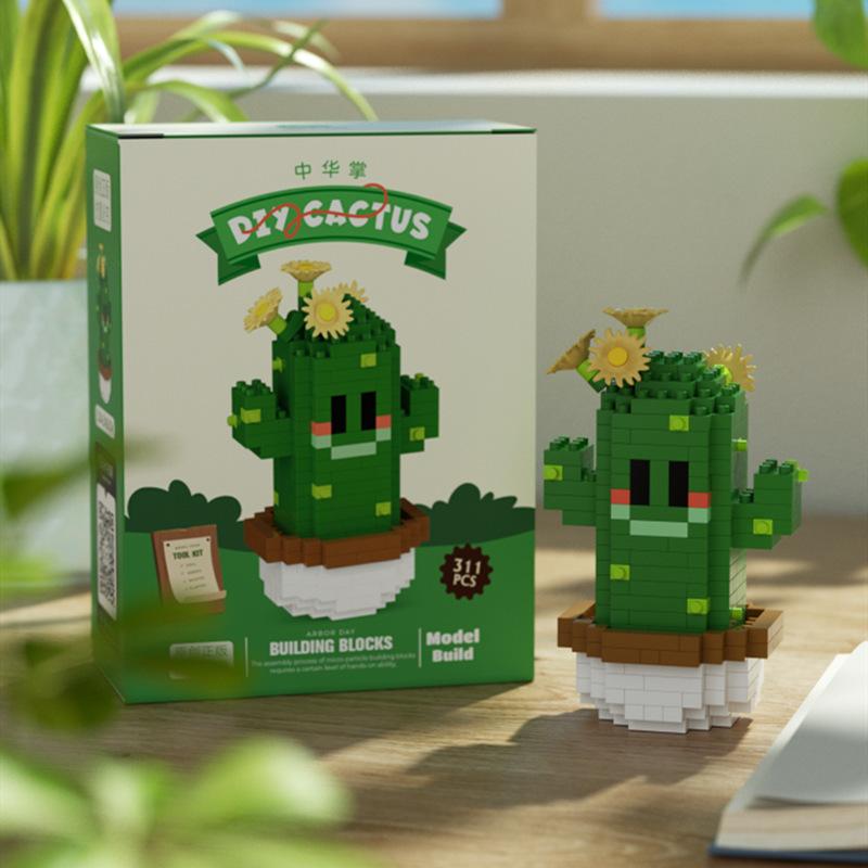 Новые креативные забавные персонажи мультфильмов Микро алмазные строительные блоки кактус нано кирпич горшечные растения строительные обучающие игрушки подарок