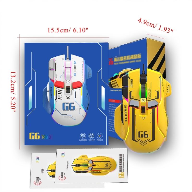G6 Программируемая игровая мышь Игровая мышь Компьютерные игровые мыши 12800 точек на дюйм 6-уровневая регулируемая мышь PI USB C 5 В / 180 мА
