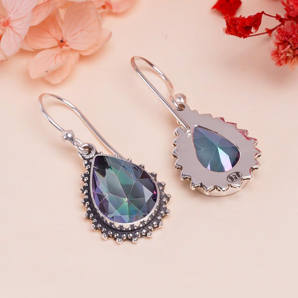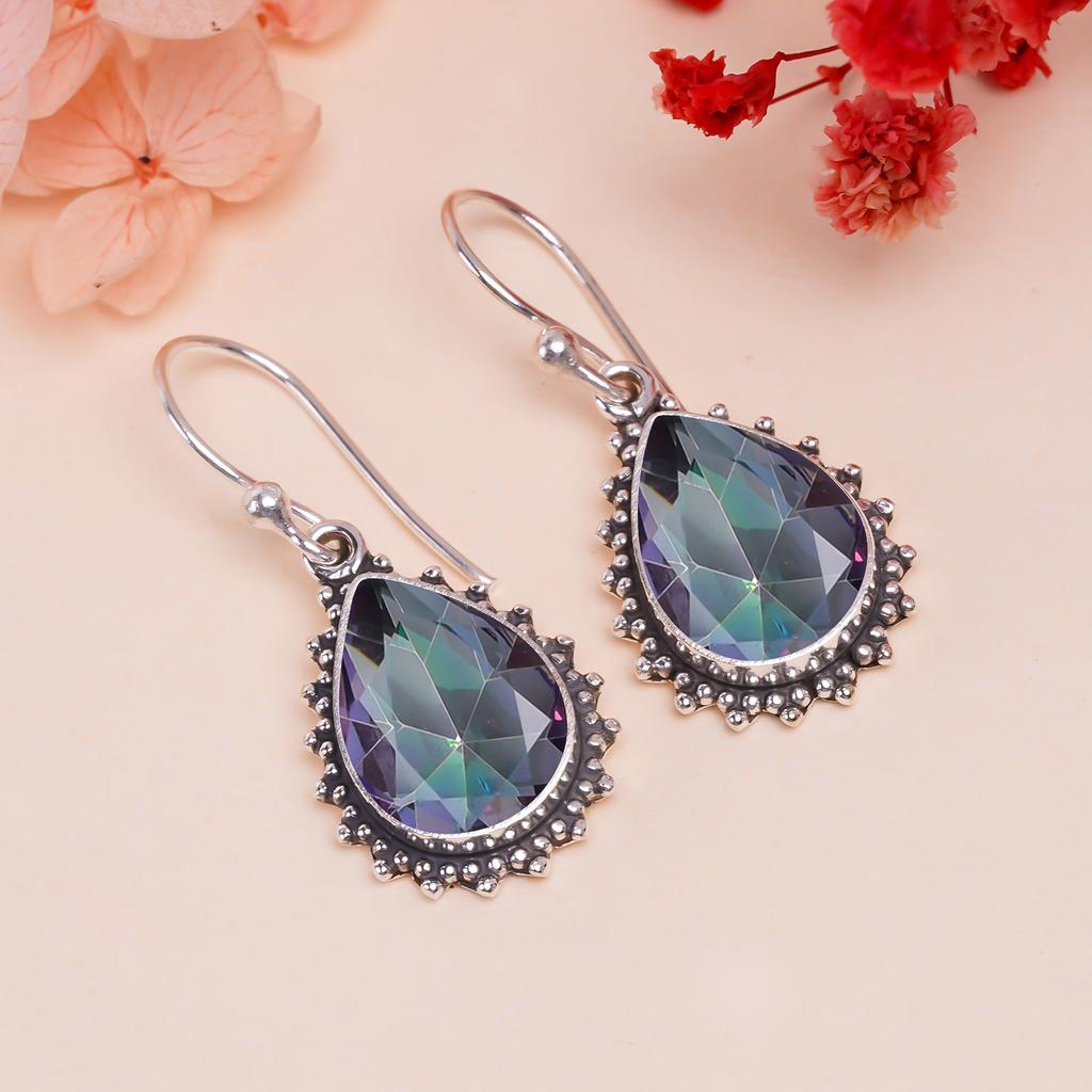 Радужный мистический топаз, серьга из стерлингового серебра 925 пробы V9537, радужная серьга, серьга-груша, подарок на День святого Валентина, подарок для нее, подарок на день рождения, ручная работа