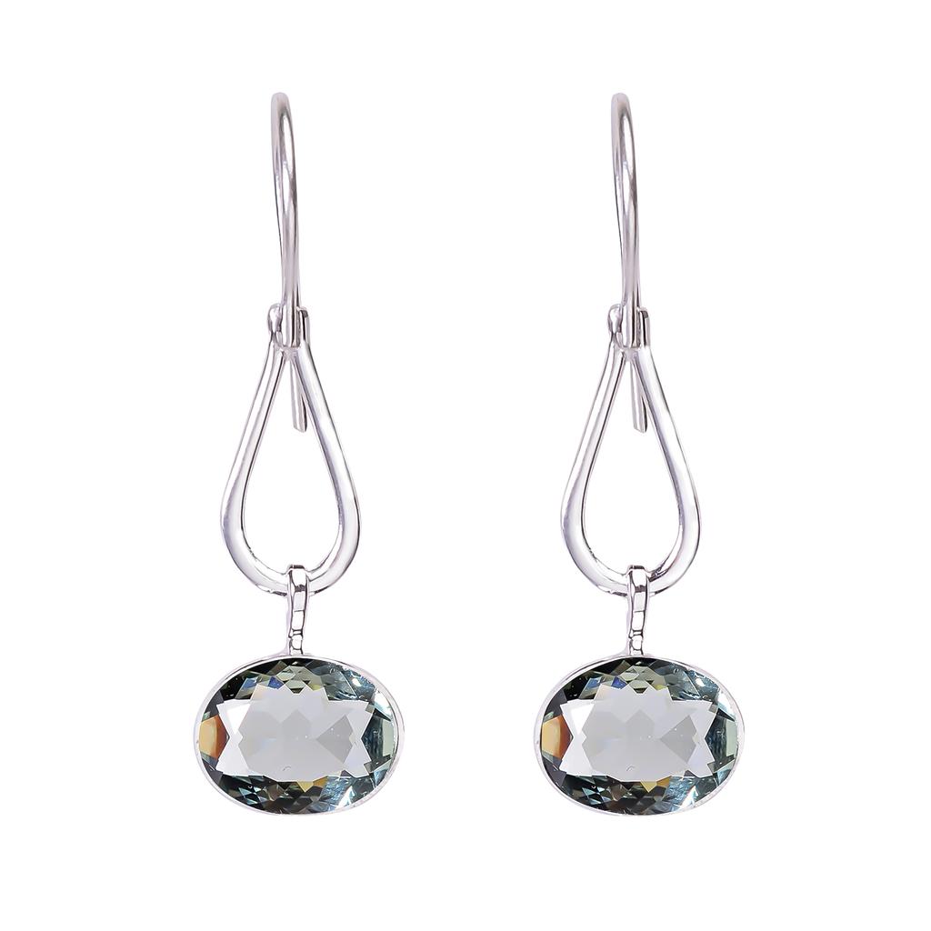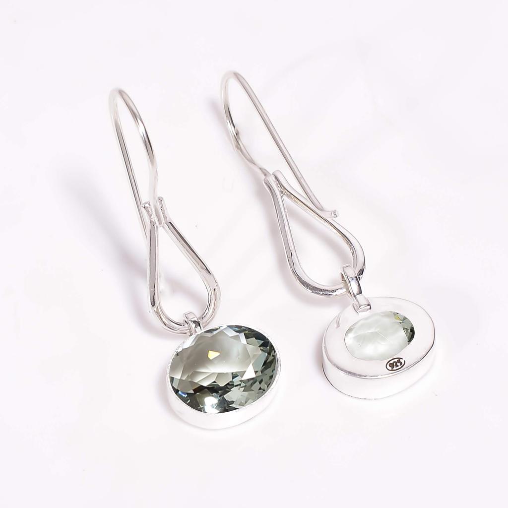 Серьги из серебра 925 пробы с зеленым аметистом V81, мятно-зеленые серьги, овальные серьги, подарок на День святого Валентина, подарок для нее, подарок на день рождения, украшения ручной работы,