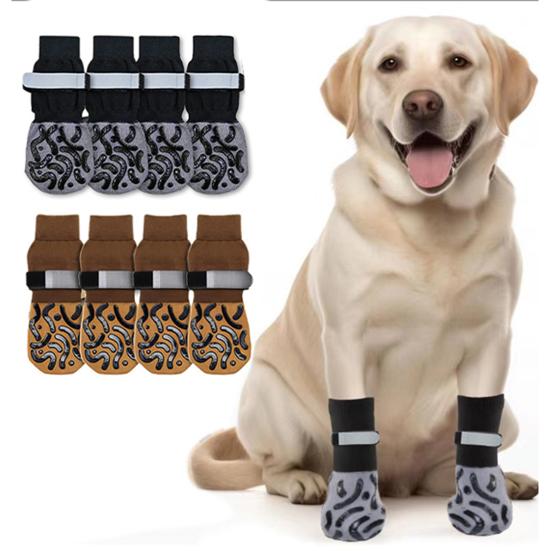 4 шт. нескользящие носки для собак с силиконовыми захватами, предотвращающими облизывание лап, регулируемый ремешок, дышащие, водонепроницаемые, эластичные носки для пола из твердой древесины