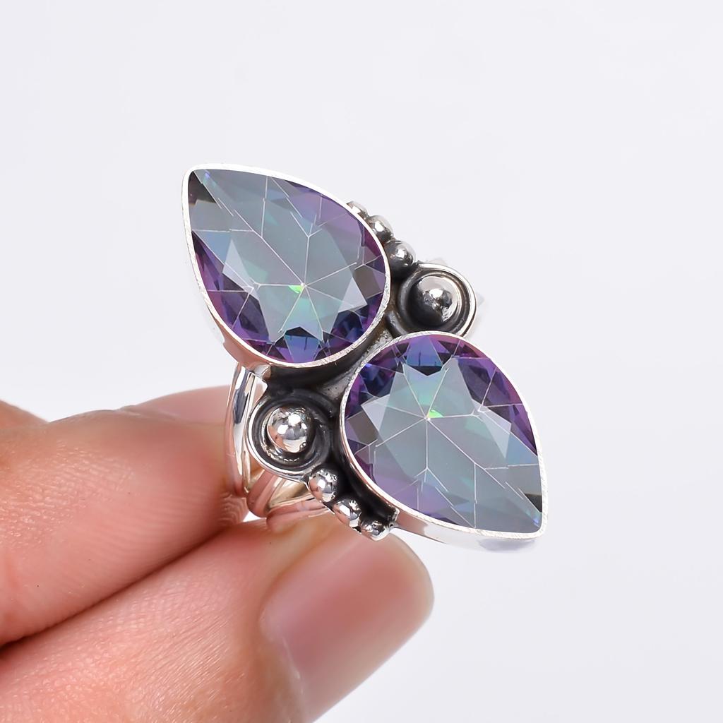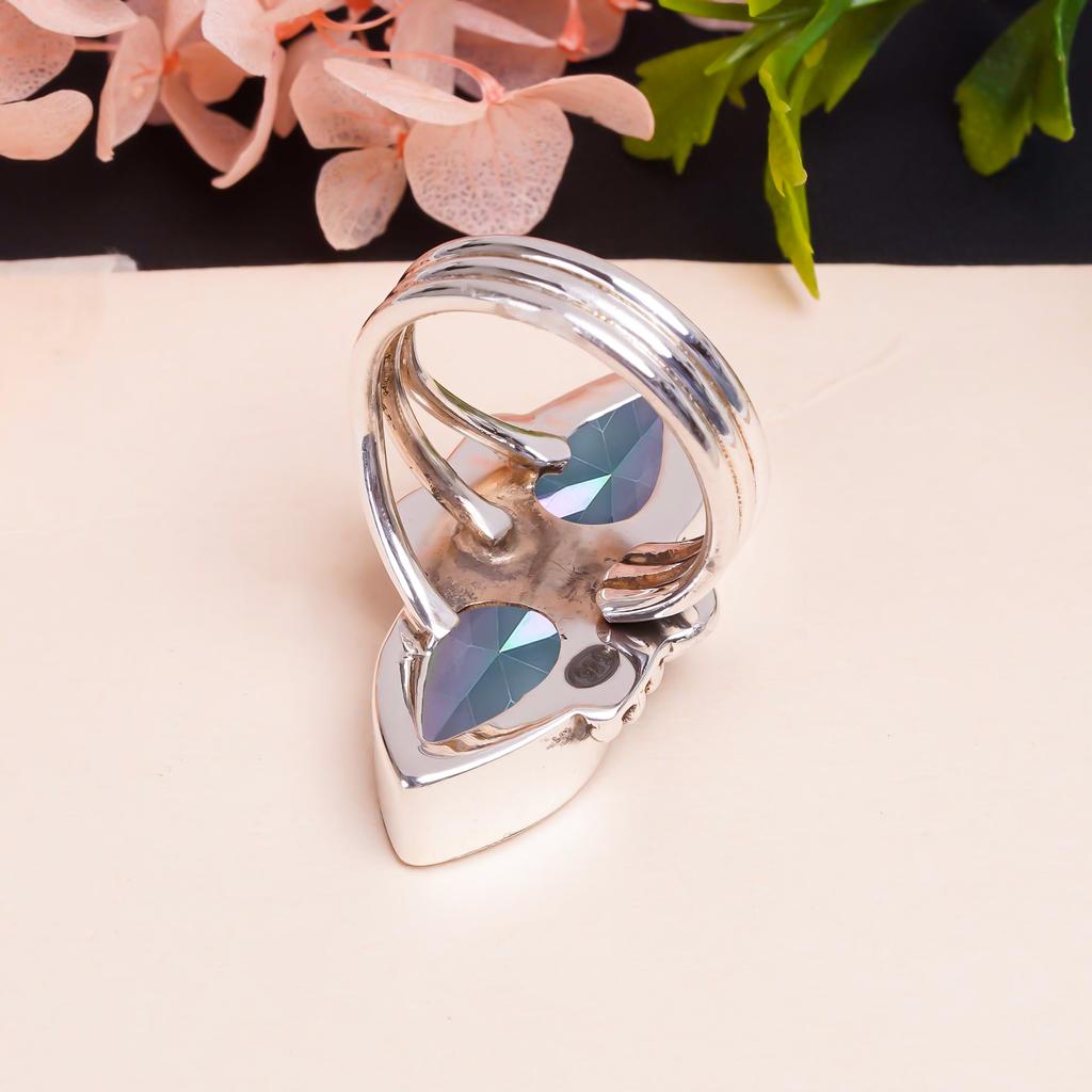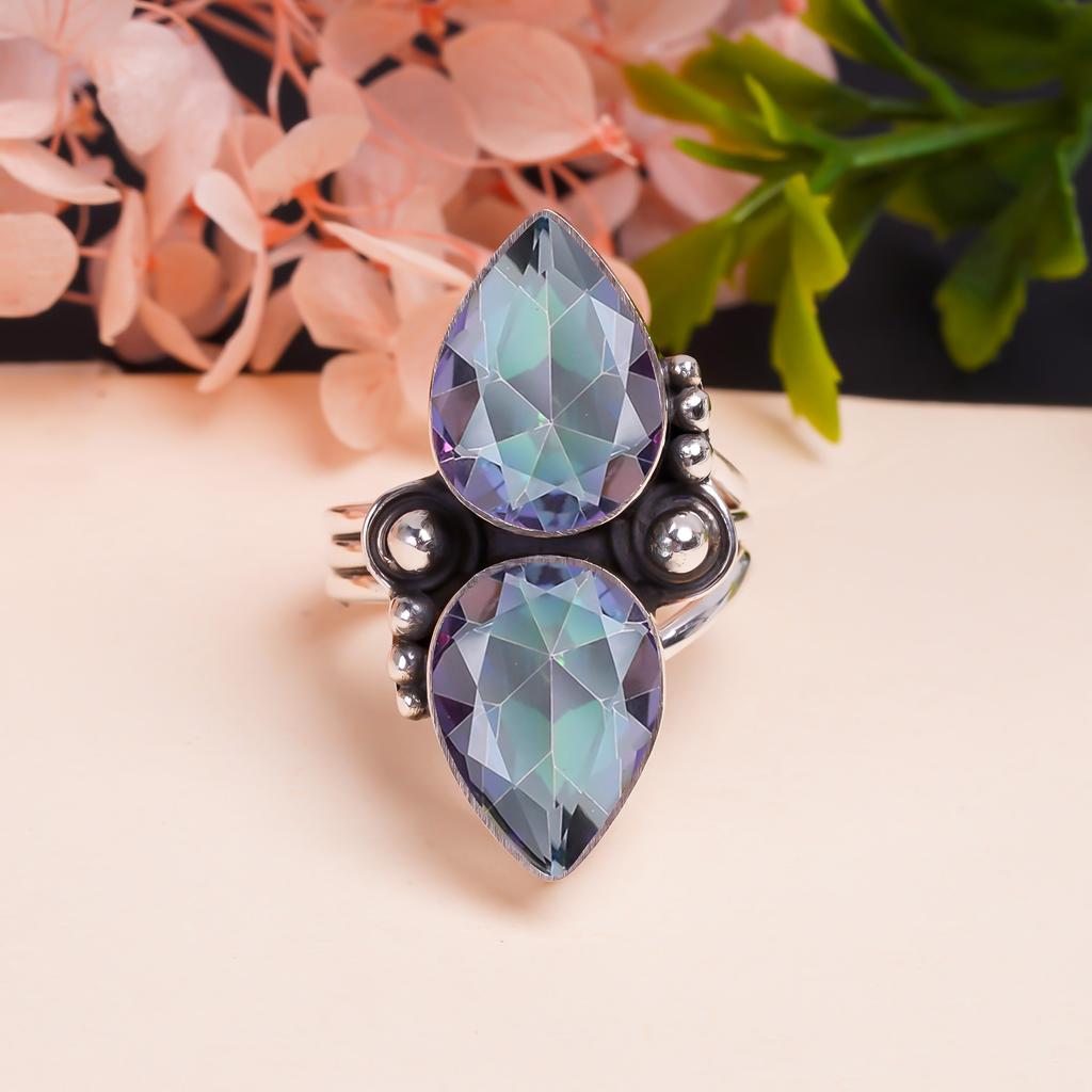 Кольцо с радужным мистическим огненным топазом и драгоценным камнем из стерлингового серебра 925 пробы V9377, радужное кольцо, грушевое кольцо, подарок на День святого Валентина, подарок для нее, подарок на день рождения, ручная работа