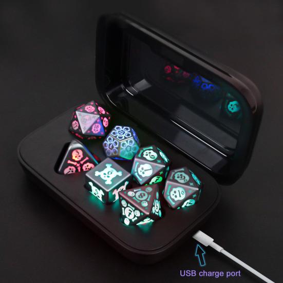 Улучшите свой игровой опыт с нашими инновационными игральными костями. Легко заряжайте игральные кости тремя различными способами для вашего удобства. Светящиеся игральные кости RGB имеют завораживающие цвета, которые мигают при броске, добавляя азарта в вашу игру..