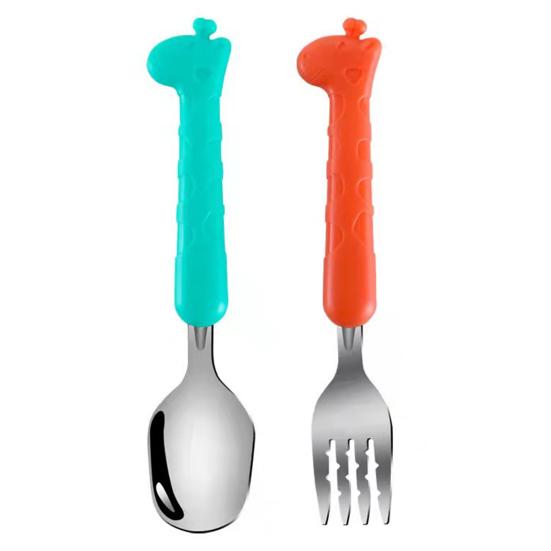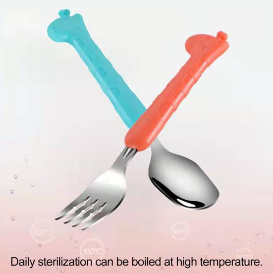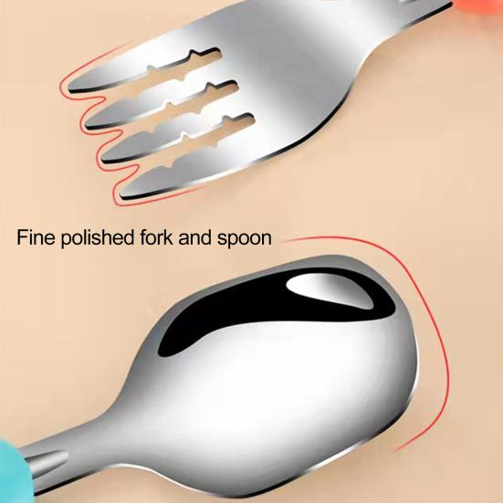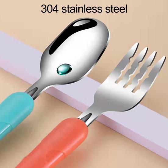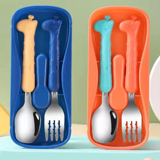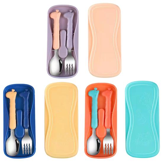 1 набор детских столовых приборов с противоскользящим покрытием и футляром для хранения, обучающая пищевая нержавеющая сталь, ложка для кормления младенцев, вилка, детские товары