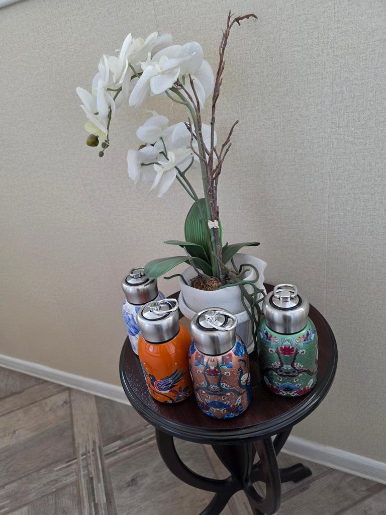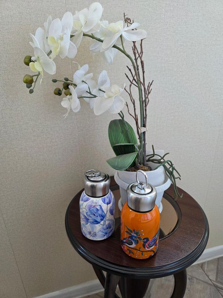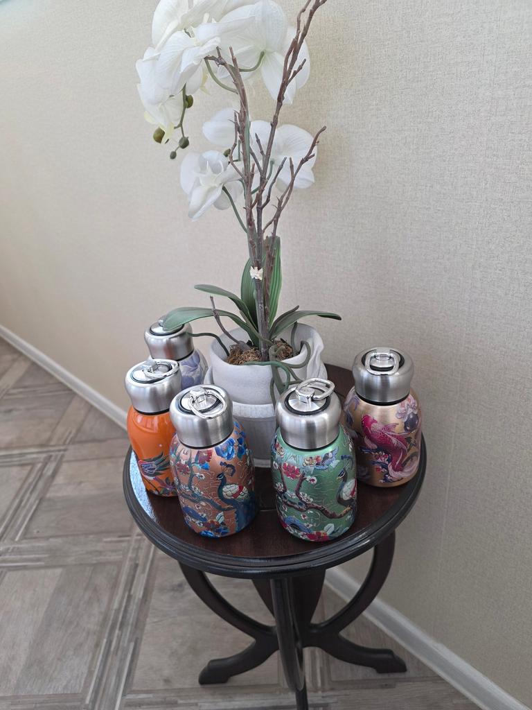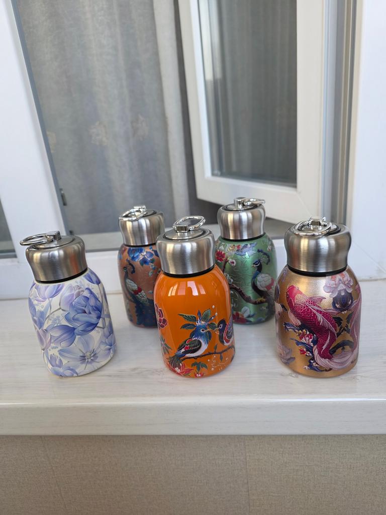 Термос на 300 мл. От магазина DYS Kitchen. Маленький, поместится в любую сумочку, держит горячую воду около 8 часов. Покупала для подарков!
