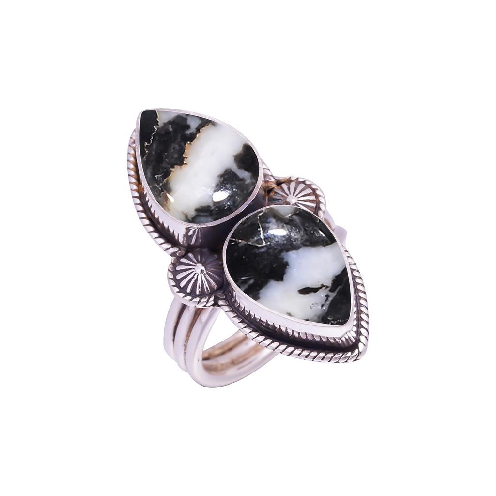 Белый бирюзовый буйвол - Кольцо из серебра 925 пробы с драгоценными камнями Невады V9433, черно-белое кольцо, грушевидное кольцо, подарок на День святого Валентина, подарок для нее, на день рождения G