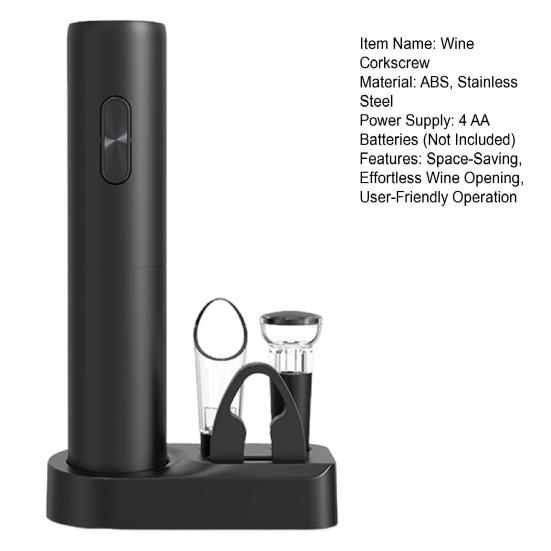 Эффективное открытие вина: Открывайте бутылки за 5-7 секунд с помощью этого электрического штопора, работающего от 4 батареек типа АА. Наслаждайтесь легким откупориванием, не повреждая пробки, что идеально подходит для частого использования и легкого открывания нескольких бутылок.