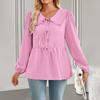 Женская модная рубашка с длинным рукавом и V-образным вырезом, с галстуком-бабочкой, футболка, топы