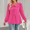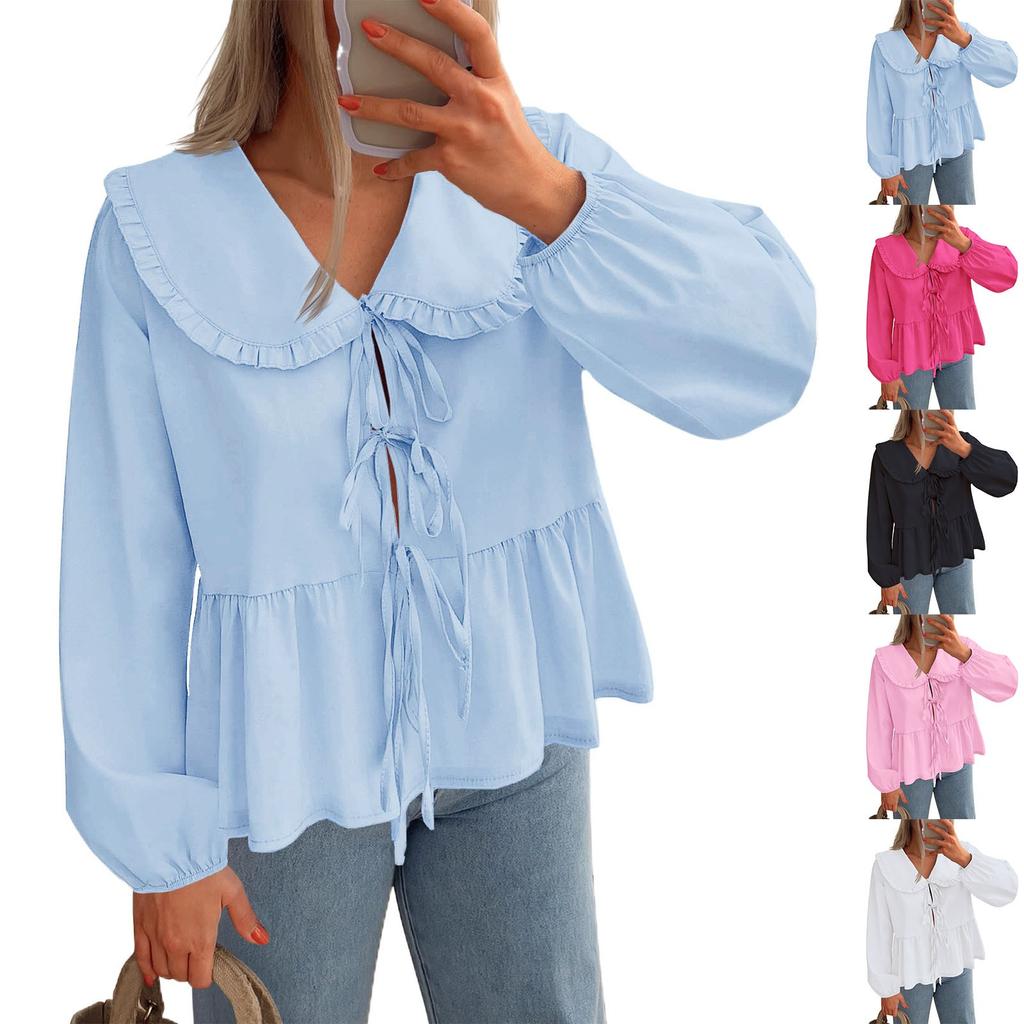 Женская модная рубашка с длинным рукавом и V-образным вырезом, с галстуком-бабочкой, футболка, топы — купить товар онлайн с бесплатной доставкой до всему миру!