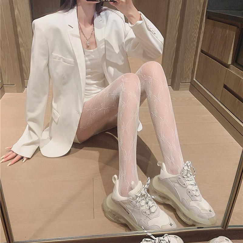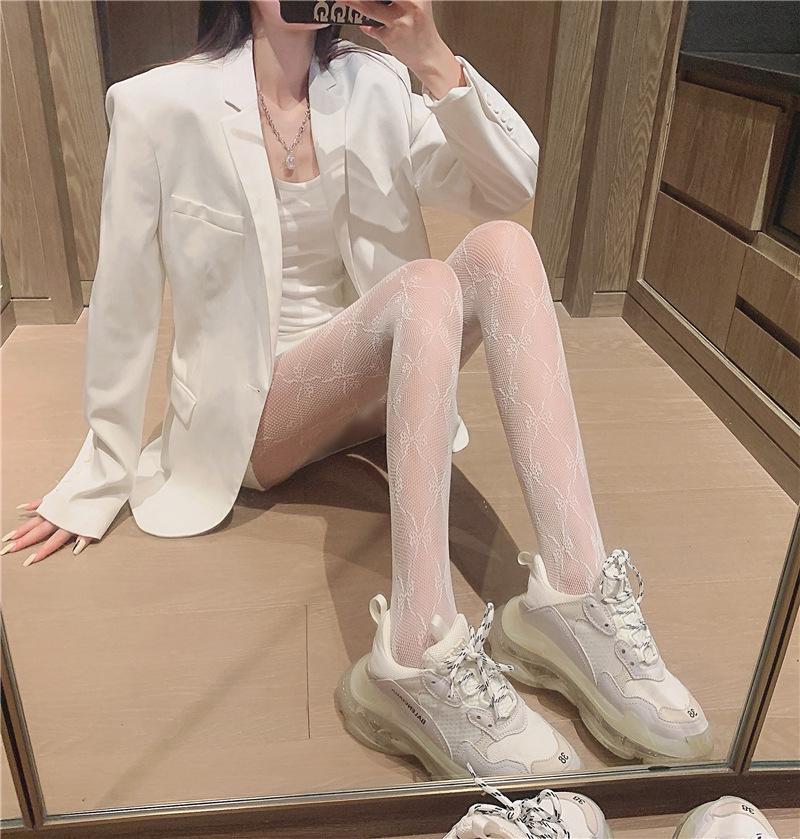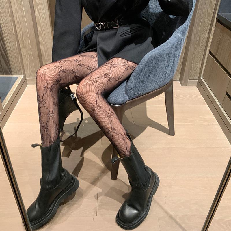 Ретро черные шелковые сетчатые чулки с бантом - сексуальные колготки для ночного клуба для женщин, весенняя коллекция