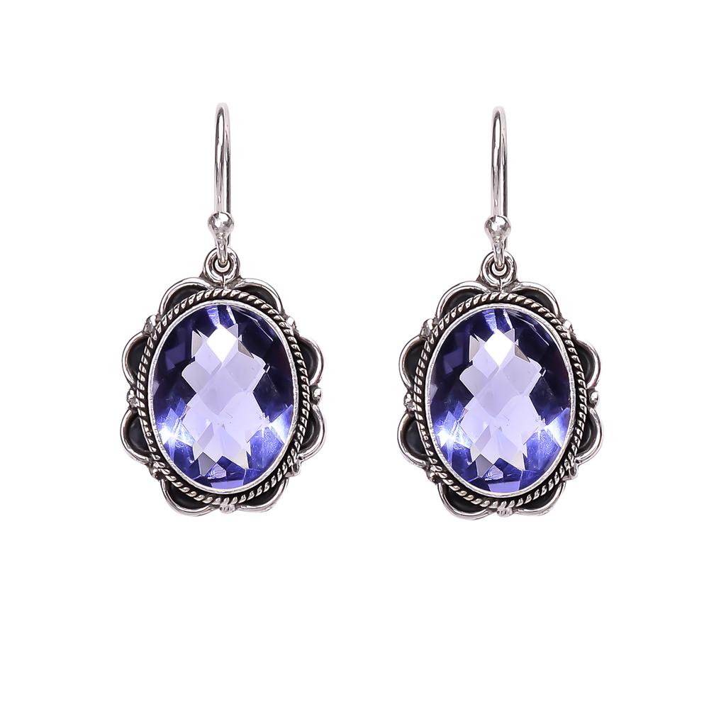 Серьги из стерлингового серебра 925 пробы с иолитом V331, ярко-синие серьги, овальные серьги, подарок на День святого Валентина, подарок для нее, подарок на день рождения, украшения ручной работы, серебро