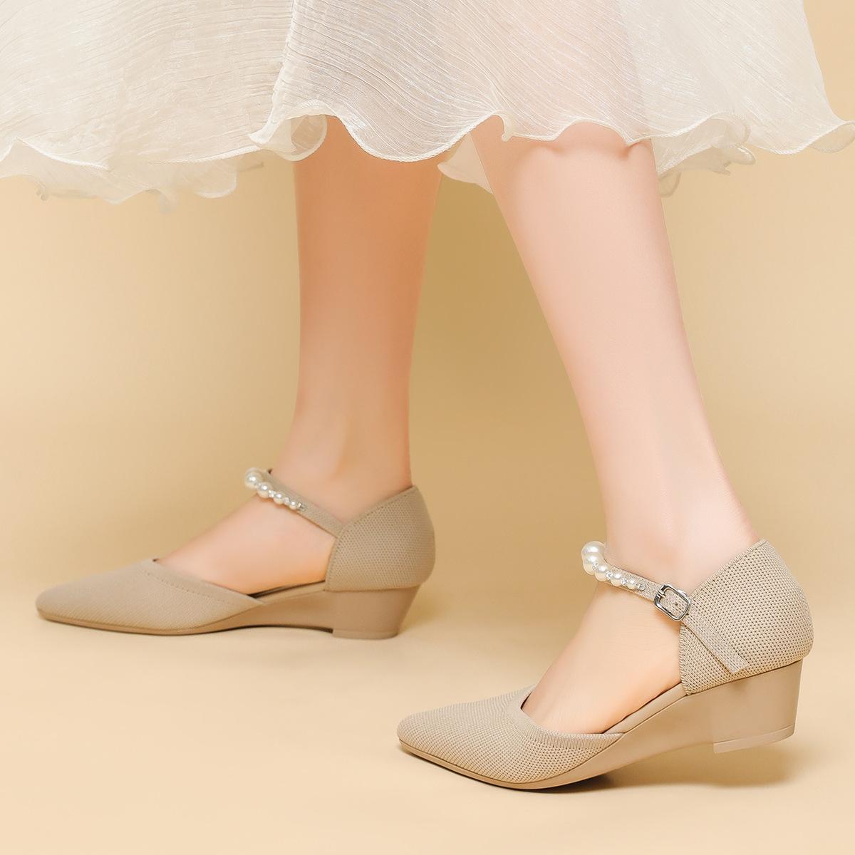 Женские весенние туфли на каблуках с острым носком, повседневные туфли с неглубокой горловиной и полой пряжкой, однотонные туфли с жемчужным принтом, размеры 34-40