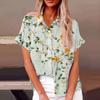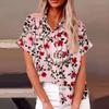 Женская модная свободная повседневная рубашка с коротким рукавом и отворотом на пуговицах, футболка с принтом, топ