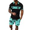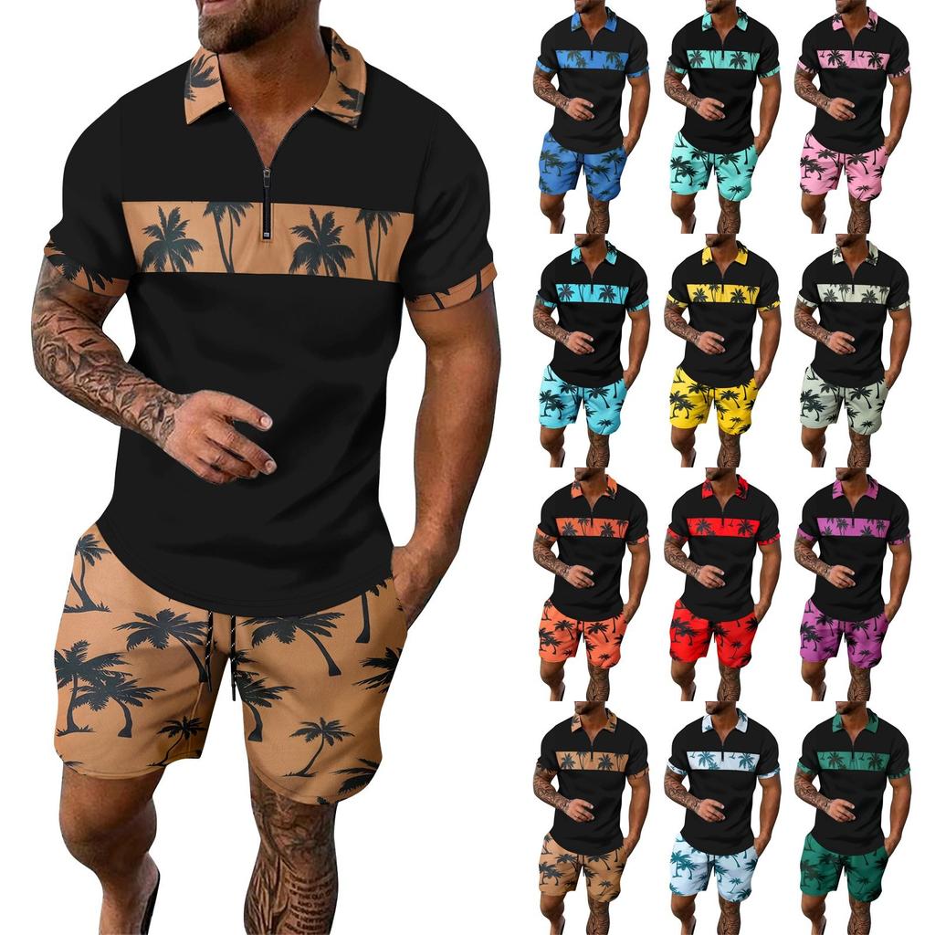Мужской летний гавайский принтованный костюм с коротким рукавом и застежкой-молнией и лацканами, повседневный спортивный костюм для мужчин