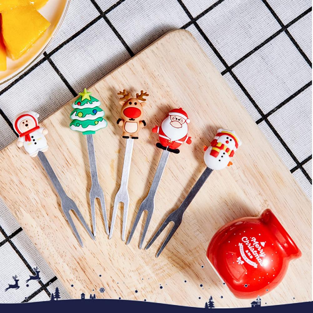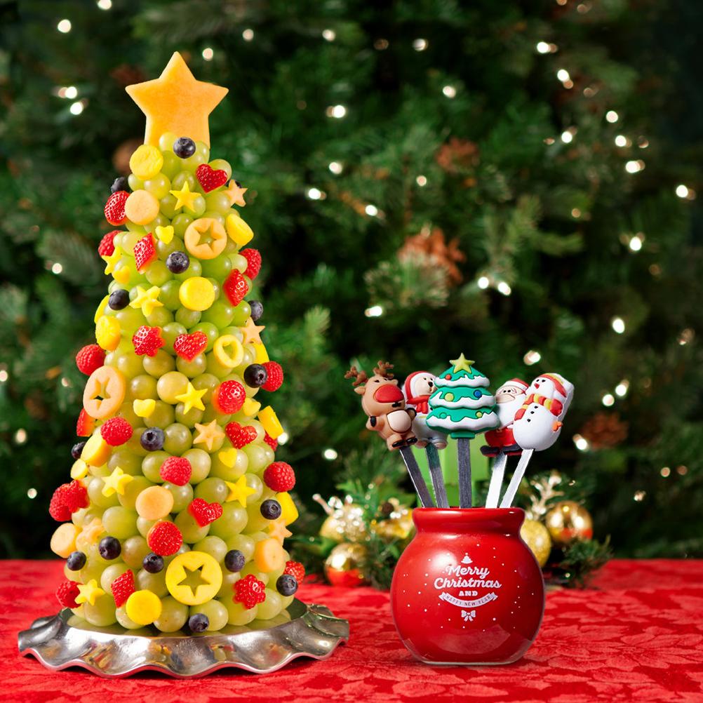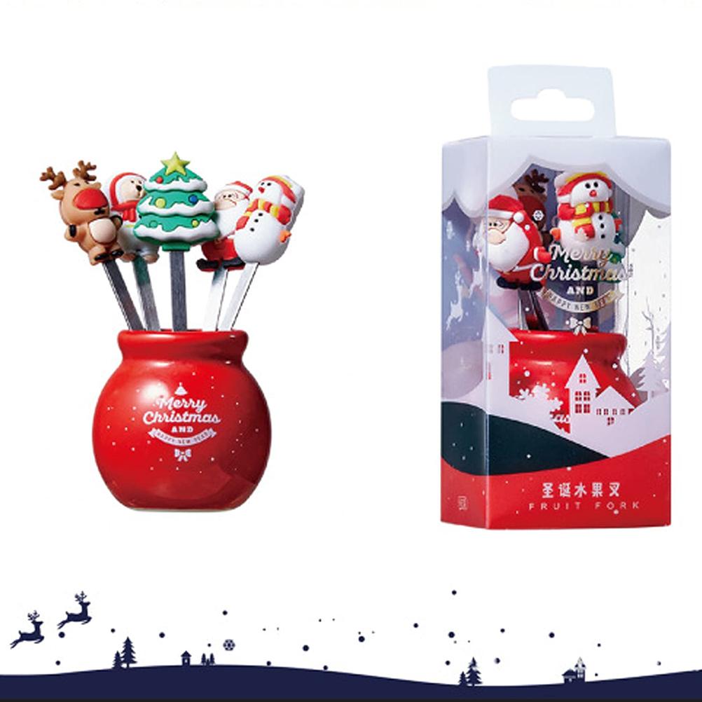 Рождественская вилка для фруктов Многоразовый набор вилок для фруктов Рождественская елка Лось Милый Яркий цвет с керамической подставкой для чашек для вечеринки для десерта