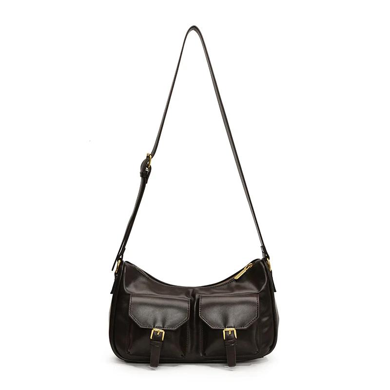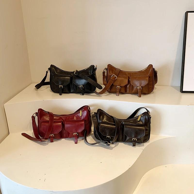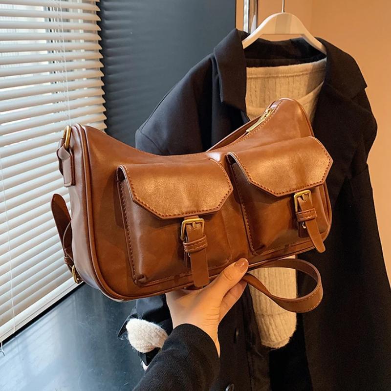 Ретро-сумка на молнии для женщин, однотонная ПУ, большая вместимость, повседневные сумки через плечо, строчка