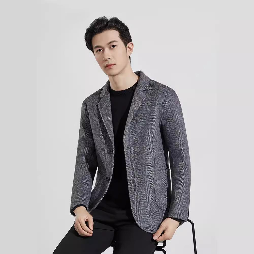 Весна и осень, мужской простой короткий шерстяной двусторонний односторонний пиджак в стиле вестерн с узором «елочка» для молодых мужчин