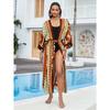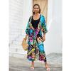 Плюс Размер Женский Пляжный Принт Кардиган Бикини Солнцезащитный Купальник С Накидкой