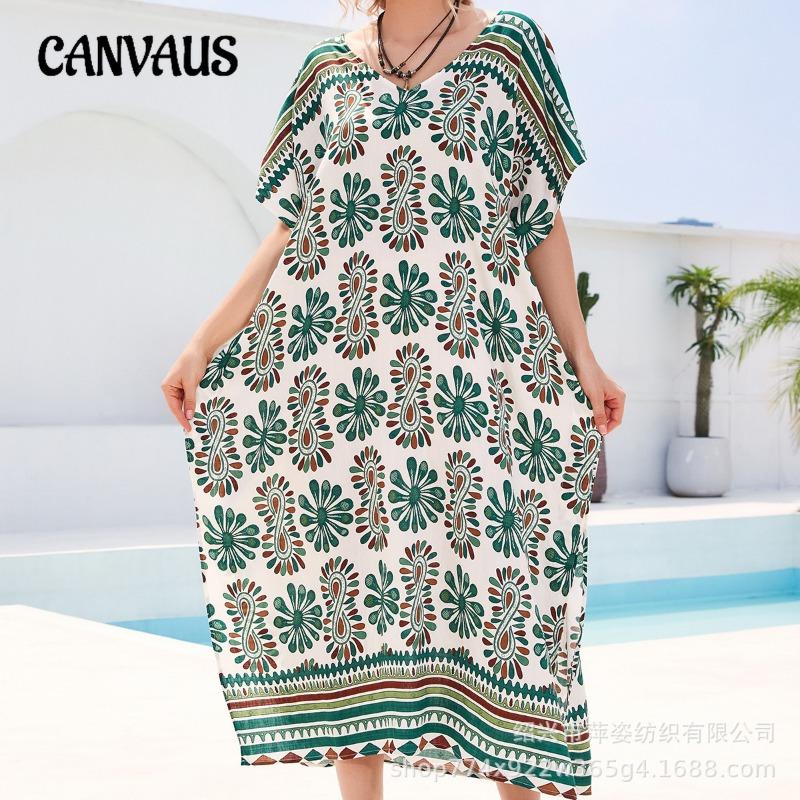 Плюс Размер Женщин Пляжный Принт Свободный Праздничный Платье Бикини Загар Накидка — купить товар онлайн с бесплатной доставкой по всему миру!