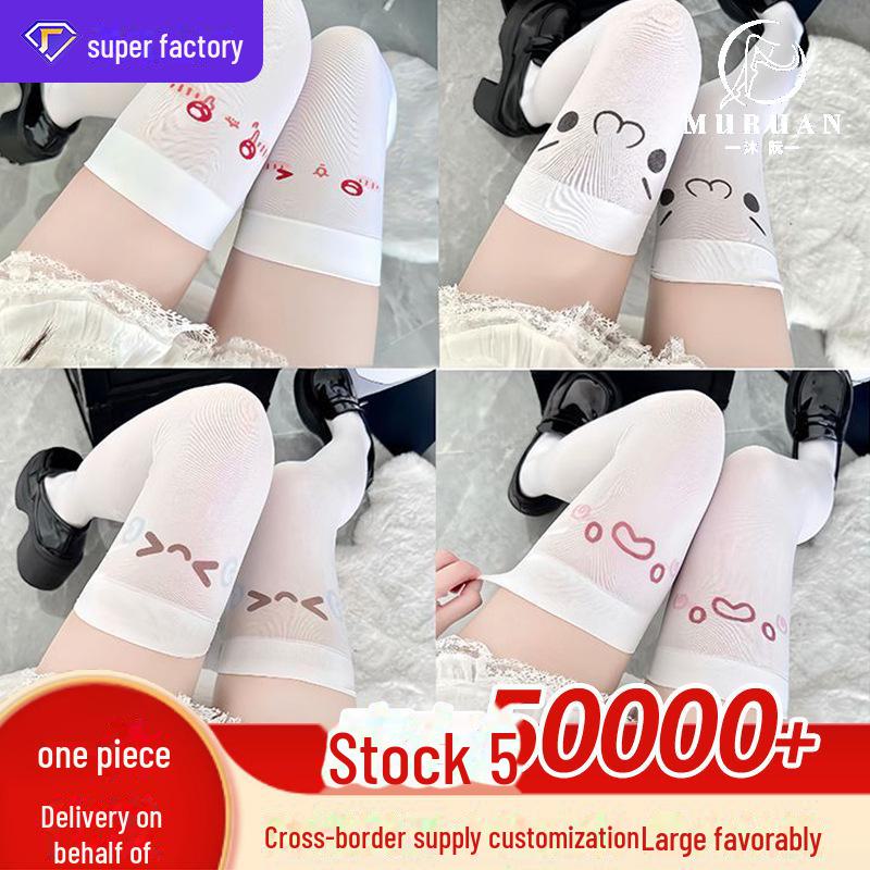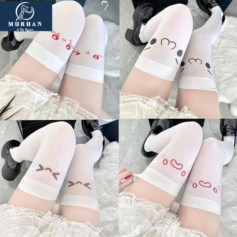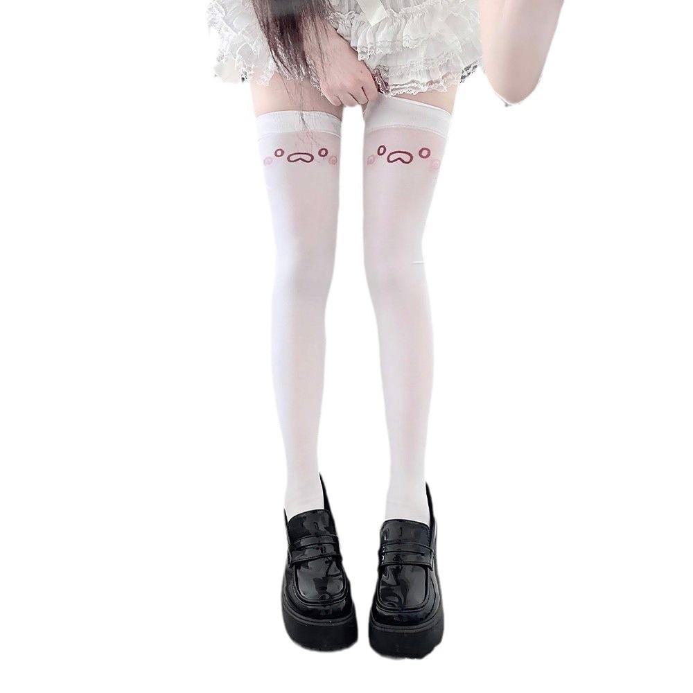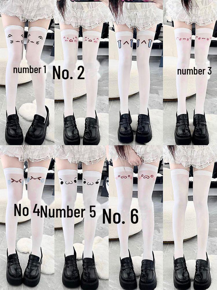 Белые высокие носки в японском стиле с милыми принтами эмодзи и субкультурным настроением
