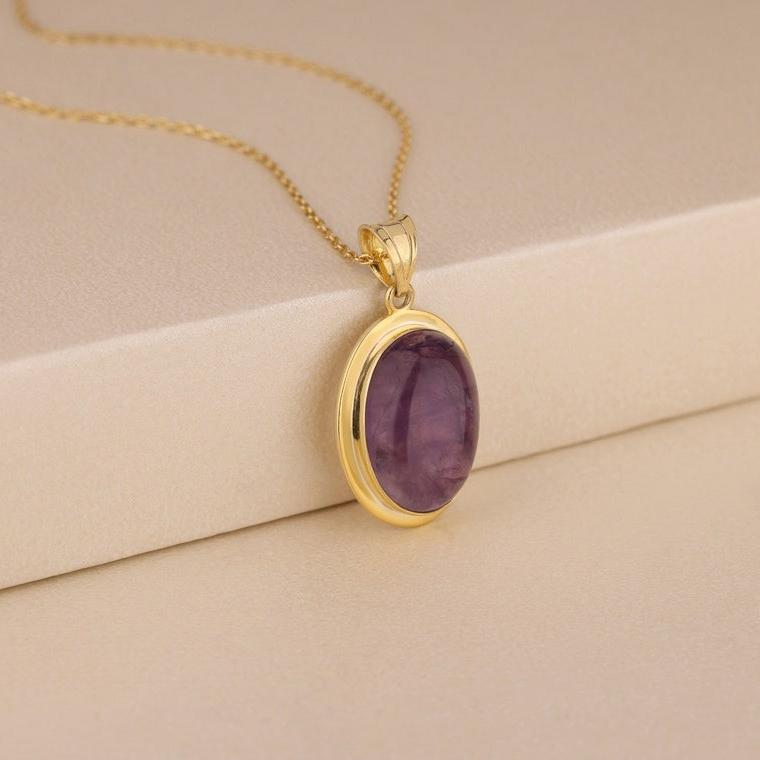 Это великолепное и стильное ожерелье из 10-каратного, 14-каратного золота и серебра обязательно должно быть в любой женской коллекции украшений.. Подвеска из аметиста украшена бриллиантами, а ее центральный камень окружен тремя драгоценными камнями.. Это прекрасное ювелирное украшение станет прекрасным подарком, который можно как дарить, так и получать!
