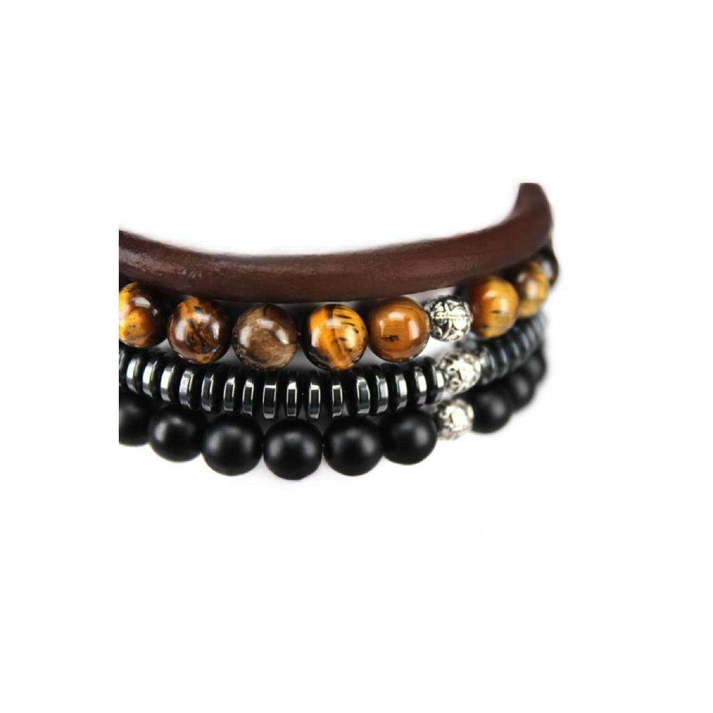 Мужской браслет из 4 частей с тигровым глазом, ониксом и гематитом из натуральных камней — купить товар онлайн с бесплатной доставкой до всему миру!