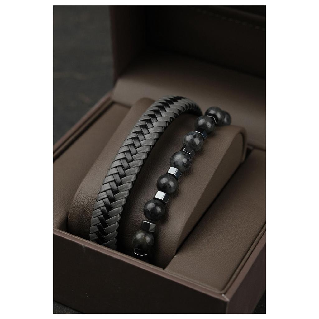 Мужской оригинальный комплект браслетов из кожи и натурального камня эксклюзивный — купить товар онлайн с бесплатной доставкой до всему миру!