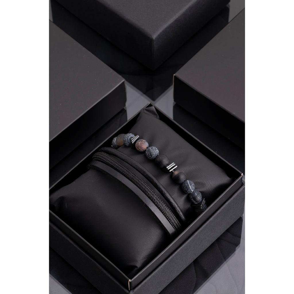 Мужской комбинированный браслет из черной натуральной кожи и гематита из натурального камня 001 — купить товар онлайн с бесплатной доставкой до всему миру!