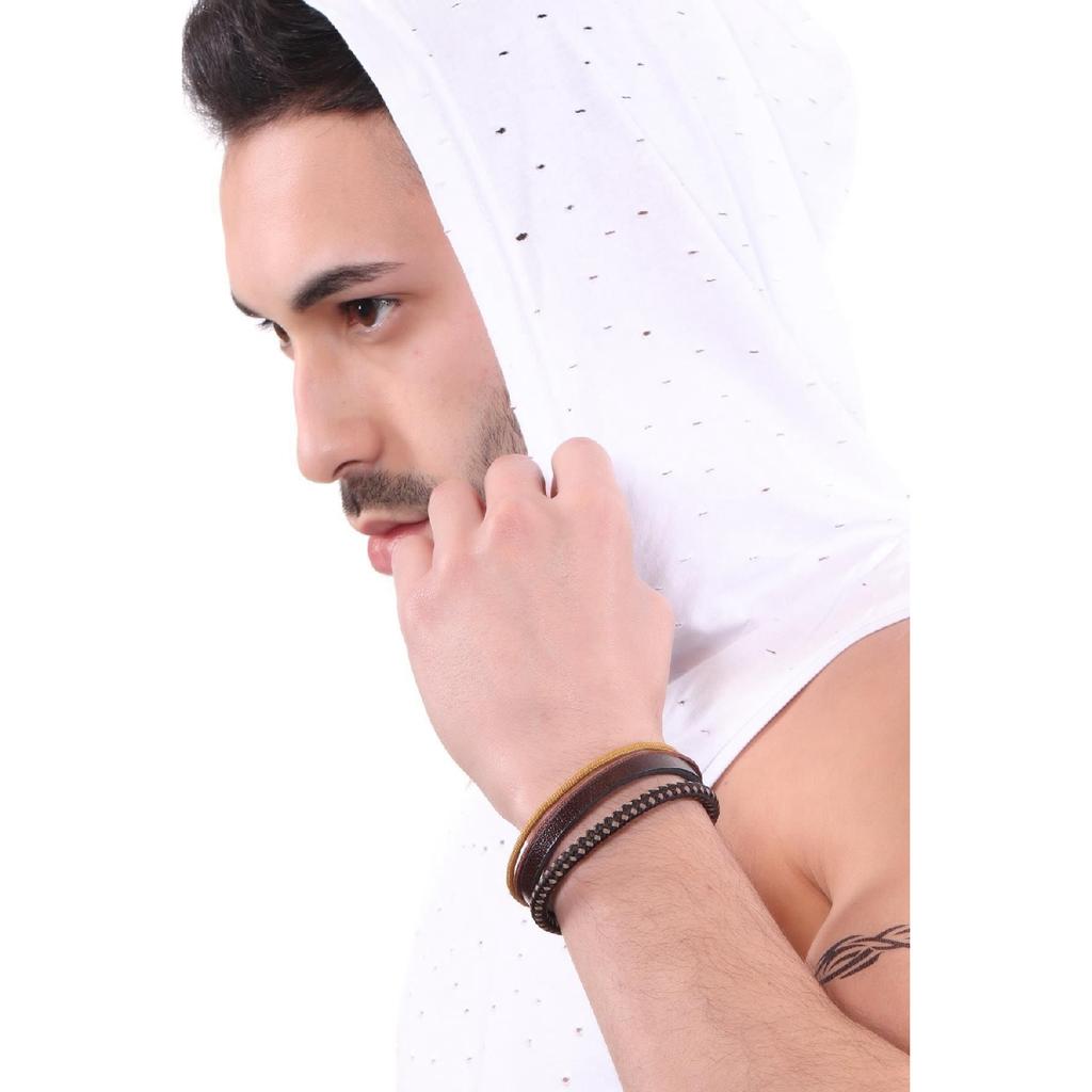 Мужской комбинированный кожаный браслет