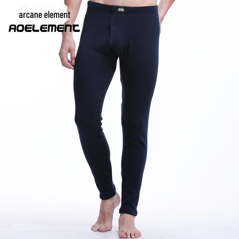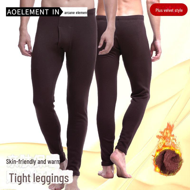 Мужские плюшевые утолщенные зимние хлопковые леггинсы - цельные узкие теплые брюки