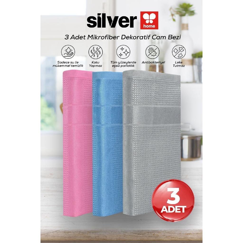 Silver Home 3-piece Microfiber Decorative Glass Cloth Gray - Pink - Blue 40x40 Cm