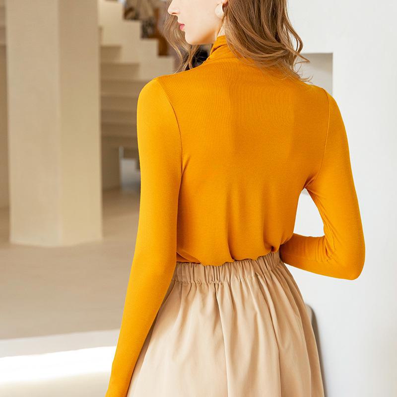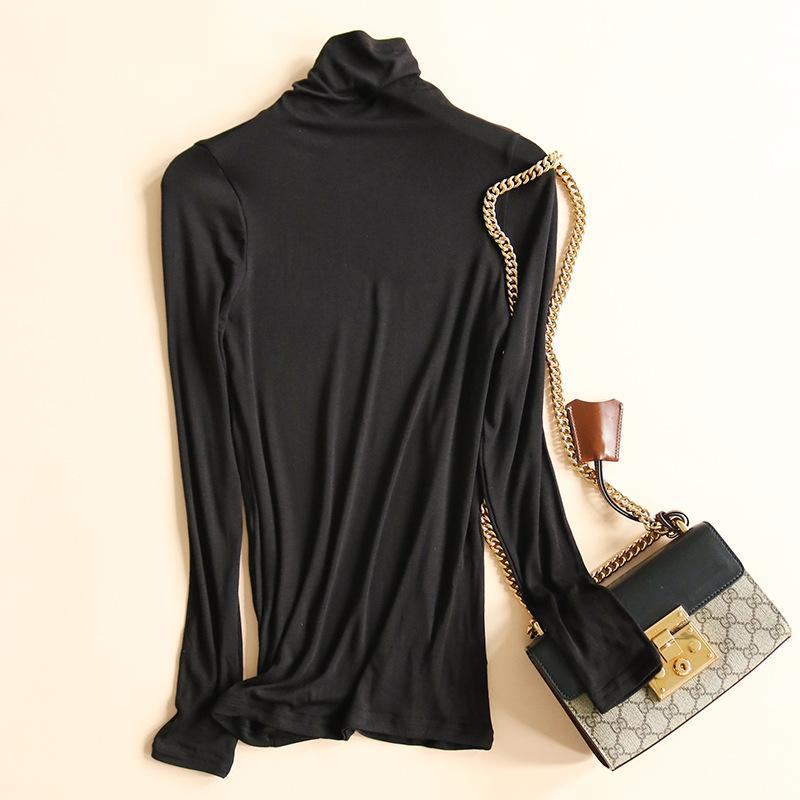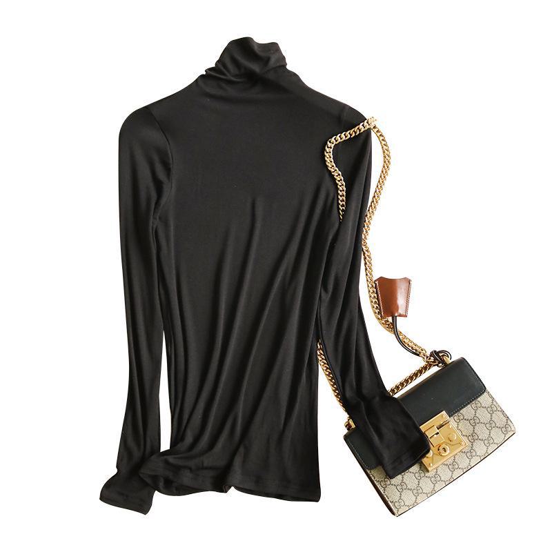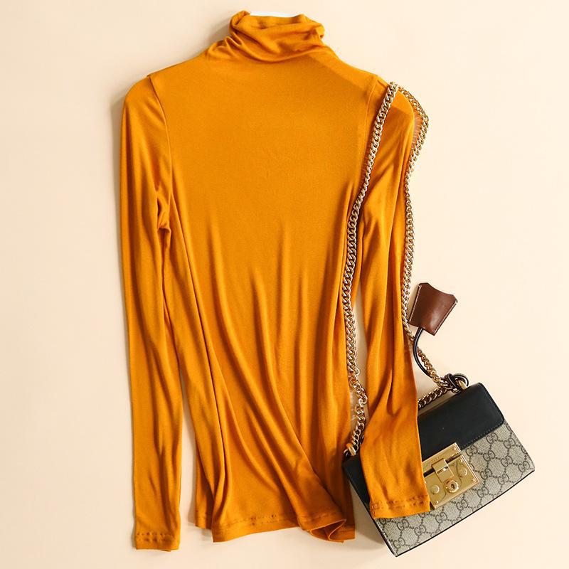 Tangge трикотажный шелковый топ с высоким воротником, облегающий теплый топ на осень/зиму