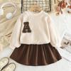Костюм для девочки с длинными рукавами Bear Leader 3-7 лет кофейного цвета с надписью «Топ + юбка» Комплект из двух предметов TQ062