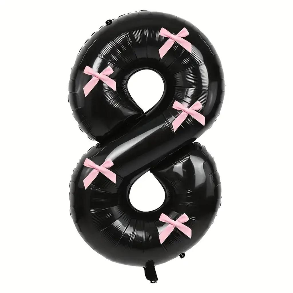 Яркий дизайн: Сочетание нежно-розового банта и гладкой черной алюминиевой пленки создает визуально привлекательный контраст, который мгновенно привлекает внимание.. Розовый бант добавляет мягкий и романтичный элемент, символизирующий любовь и нежность, а черная алюминиевая пленка придает ему современный и изысканный вид.. Цифровой дизайн на воздушном шаре еще больше подчеркивает его уникальность, выделяя его среди традиционных праздничных воздушных шаров.