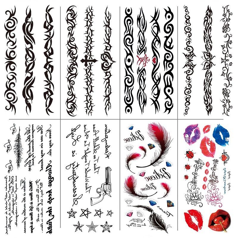 Английский Татуировка Наклейка Перо Красная Губа Тотем Рука Круг Набор Моделирование Водонепроницаемый Татуировка Наклейка