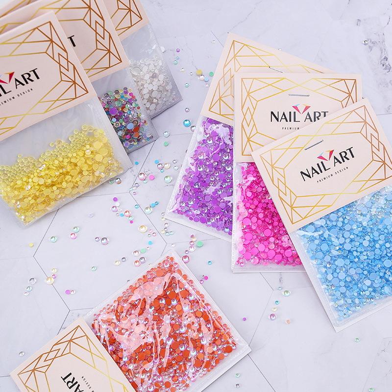 Diy Nail Man Рыбка Бусина Аврора Симфония Полукруглый жемчужный нейл-арт Пузырьковая бусина Украшения для ногтей Плоское дно Бусины Микс