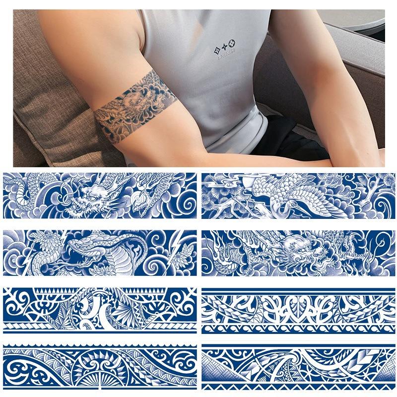 Кольцо на руку, неотражающее, долговечное, водопереводное, травяное, тату-наклейка, длинная полоса, круг, картина укиё, набор тотемов дракона и феникса