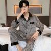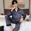 Мужской пижамный костюм весна-осень ледяной шелковый кардиган с длинными рукавами атласная пижама для мужчин домашняя одежда лето